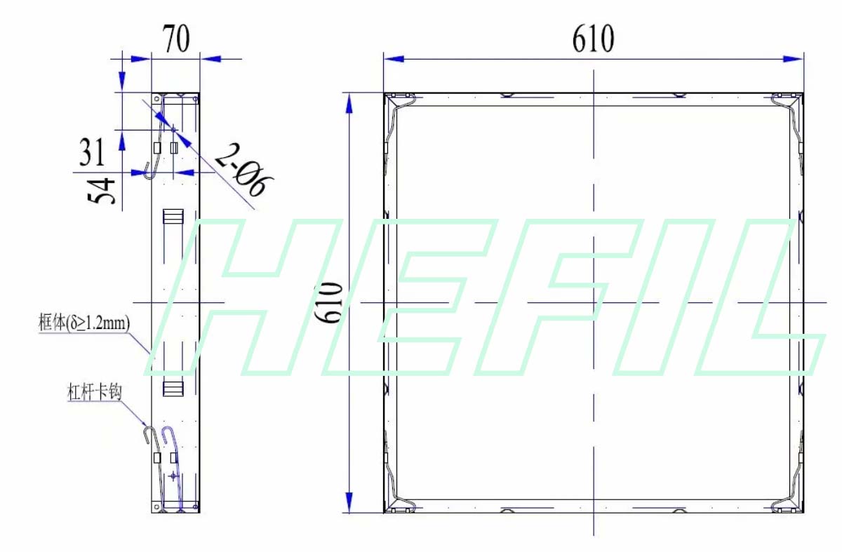 ◆在HKF框架上,可以安裝大多數國際通行尺寸一般通風用過濾器,包括本公司生產的:HBM、HBP、HPP、HACP、HACD、等型號。