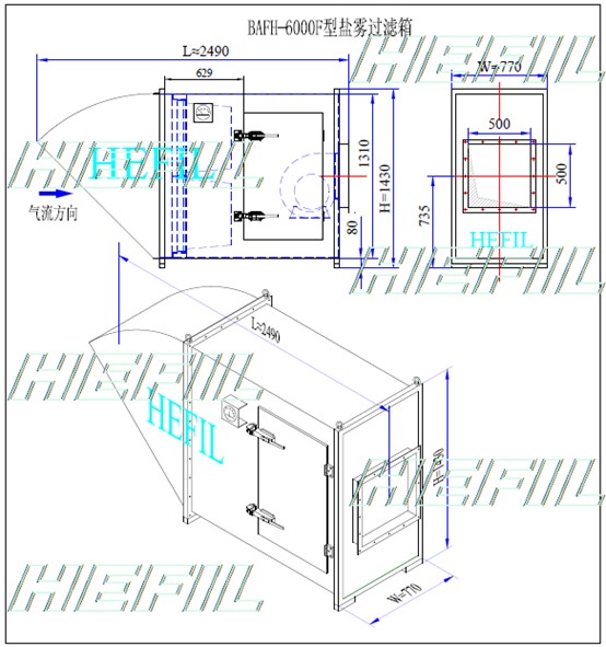 ◆鹽霧過濾箱主要由防雨器、過濾器、箱體三部分組成,防雨器和箱體一般采用優質不銹鋼304/316L材料