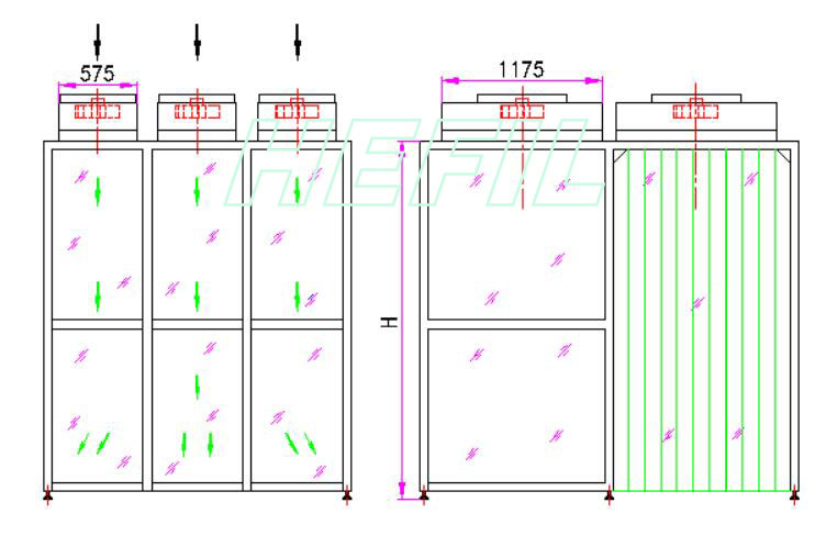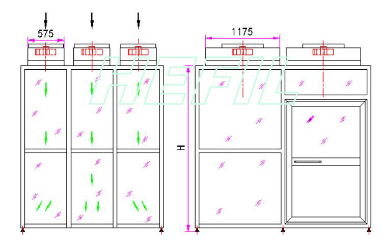 ◆ 模塊化、組裝式結(jié)構(gòu)設(shè)計(jì),安裝方便,提高潔凈等級(jí)容易,擴(kuò)展性強(qiáng),且重復(fù)利用價(jià)值高,適用于提高局部潔凈區(qū)域的潔凈度;