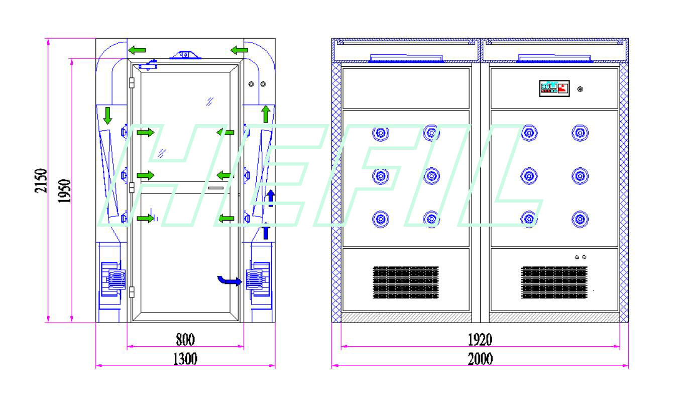 ◆HAS系列風(fēng)淋室是潔凈廠房和裝配式潔凈小室的配套設(shè)備。用于吹除進(jìn)入凈化廠房的人員和攜帶物品表面附著的塵埃,同時(shí)風(fēng)淋室也起到氣閘的作用,防止未經(jīng)凈化的空氣進(jìn)入潔凈區(qū)域。是進(jìn)行人身凈化和防止室外空氣污染潔凈區(qū)的設(shè)備。